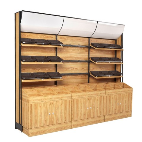 Súc Tích phong cách cửa hàng bánh mì Multilayer hiển thị Kệ di chuyển sàn gỗ bánh mì hiển thị đứng kệ